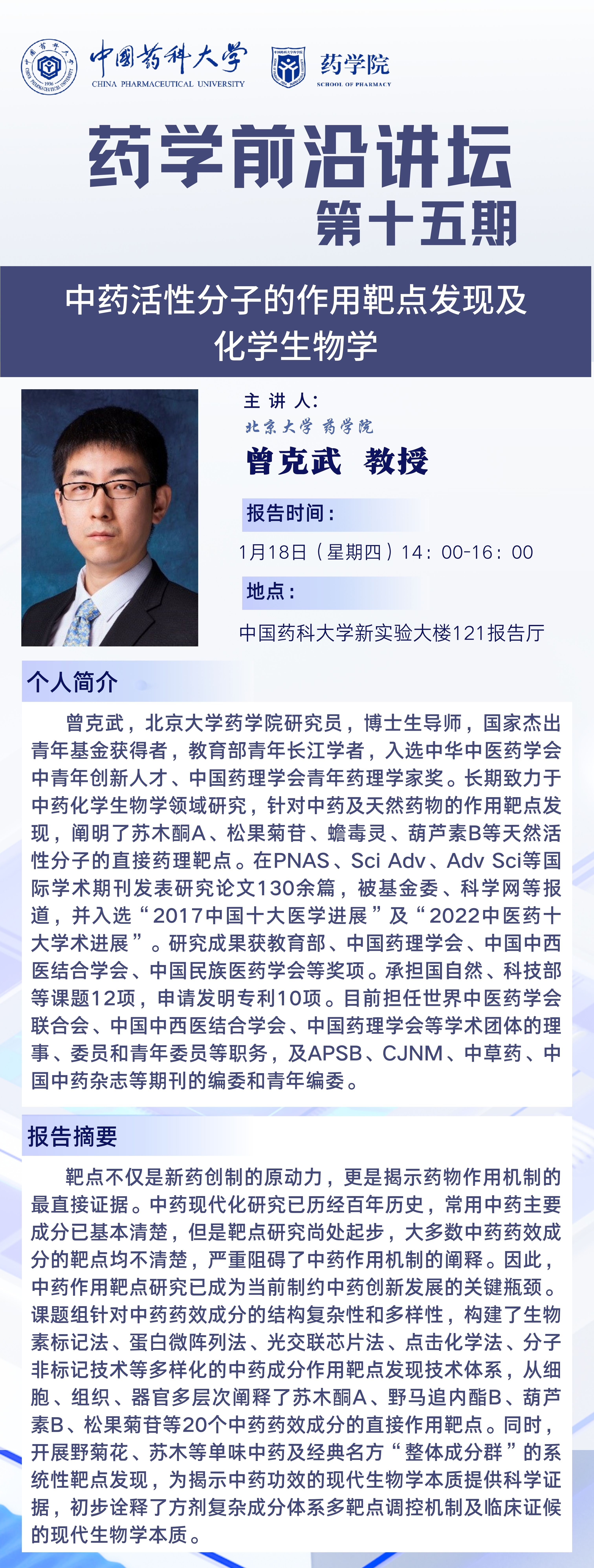 太阳成集团tyc9728第十五期药学前沿讲坛通知