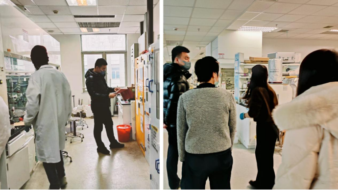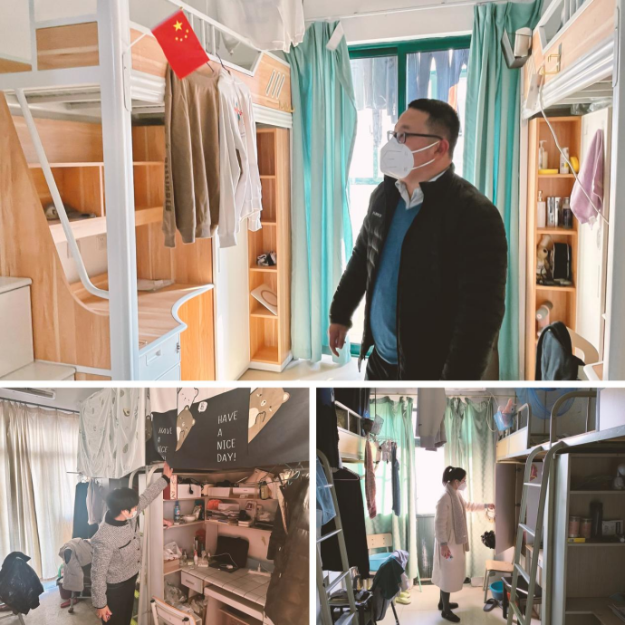 本次检查对寒假留校员工宿舍进行逐一拉网式排查,深入到每一个房间、每一个角落、每一处重点部位。学工团队认真查看了宿舍内用电设施使用情况,着重排查违章电器等安全隐患;查看宿舍走廊消防安全设施是否配套完善,对发现的问题及时予以处理;同时,对未离校同学的行程安排进行了详细询问,并叮嘱留校同学安全注意事项。随后,研究生辅导员前往留校员工实验室,对危化品、消防通道、值班值守等情况进行了现场检查。
