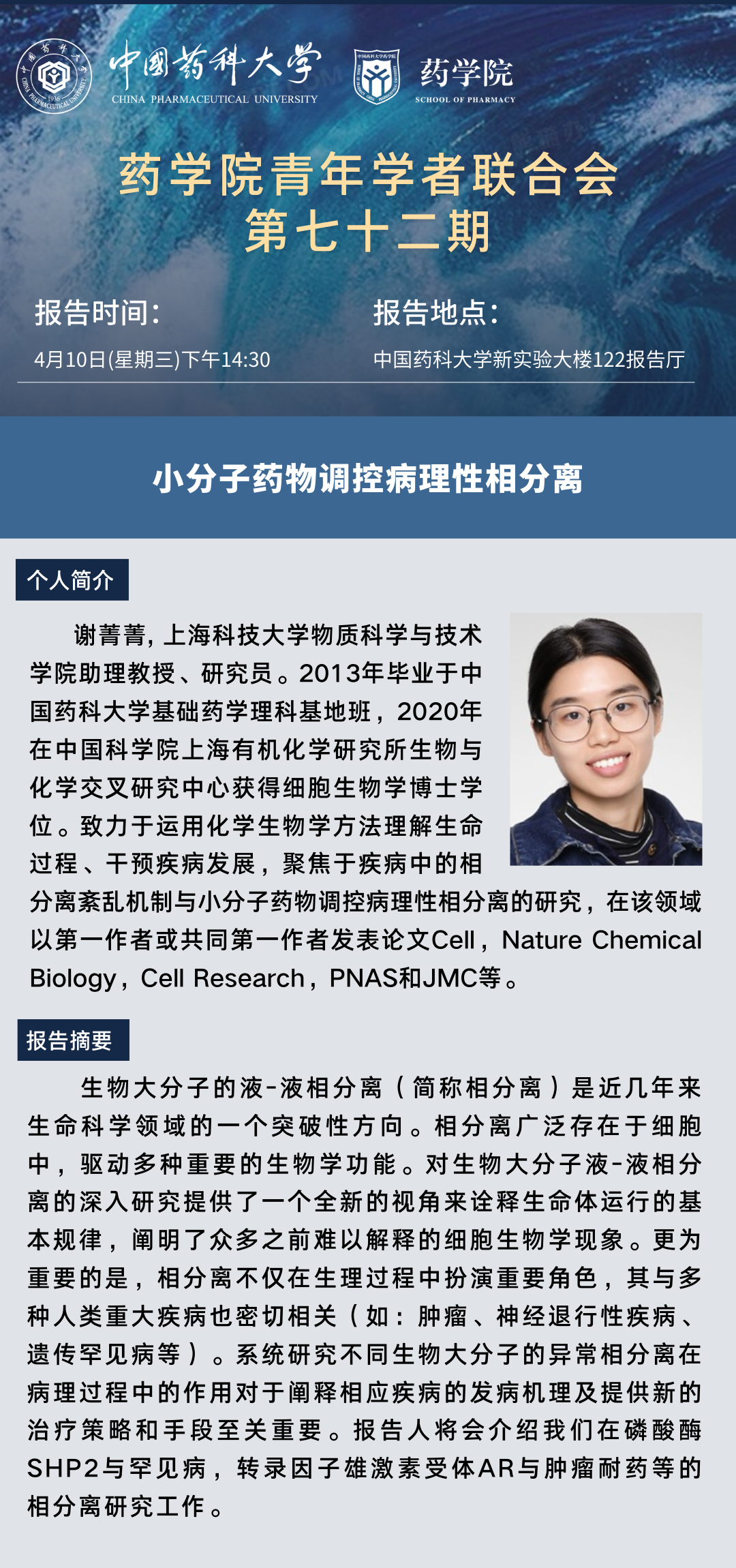 太阳成集团tyc9728青年学者联合会第七十二期学术报告通知