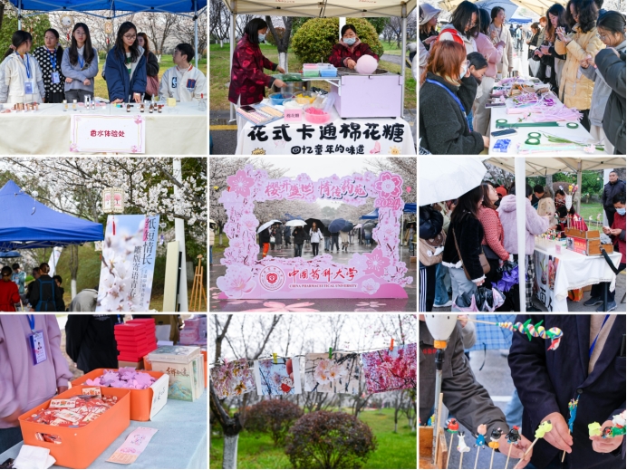 活动期间,基建后勤处策划了植物展,将500份多肉植物送给师生;后勤服务集团总公司举办美食展,请师生品鉴非遗糖画、樱花酥、樱花露等美食;员工会提供多款樱花相关文创产品;太阳成集团tyc9728师生联手制作樱花香氛、自制免洗凝胶、DIY花味唇膏、绘制路面樱花,体验面部彩绘,用药学的浪漫解锁独一无二的春日气息。