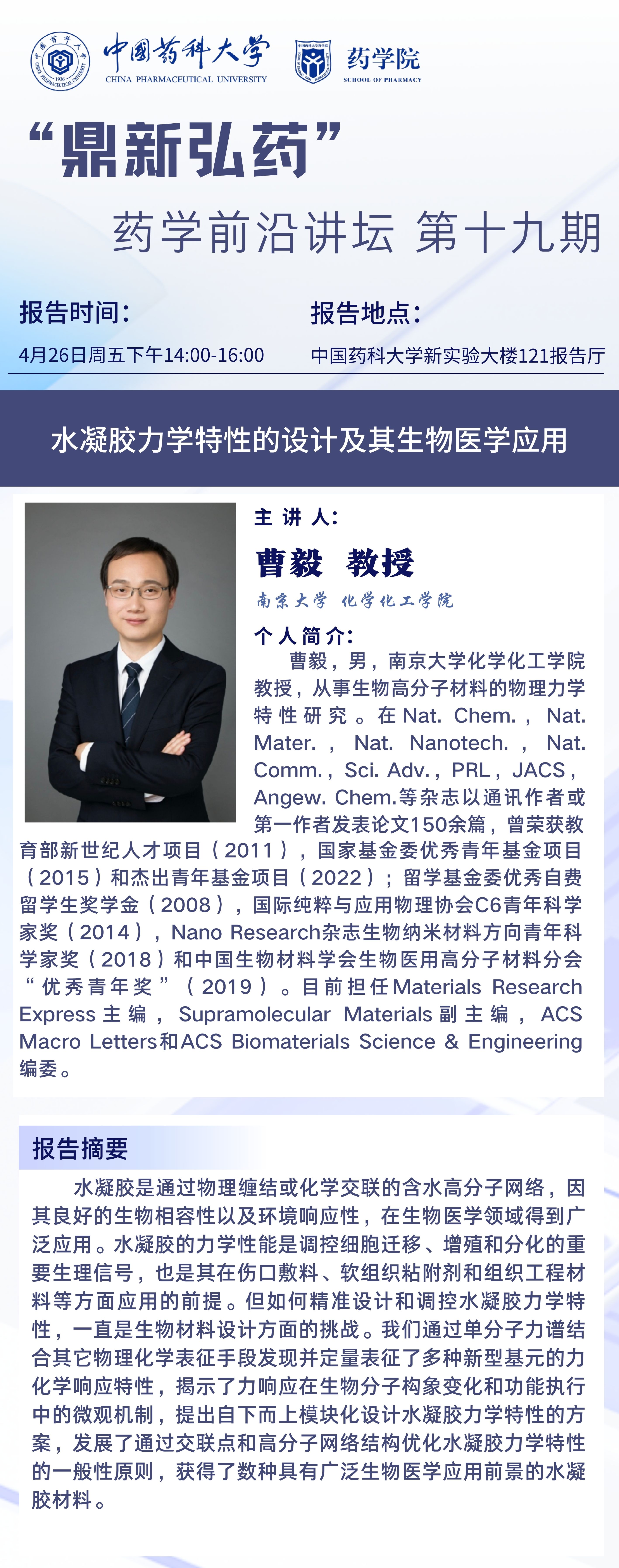 “鼎新弘药”药学前沿讲坛第十九期通知