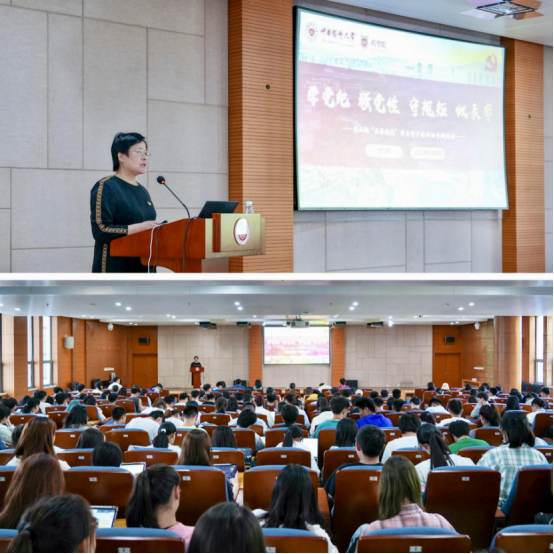太阳成集团tyc9728第六期“头雁领航”员工骨干培训班暨2024年春季青马工程培训班第二场专题党课于5月8日下午在江宁校区图书馆二楼报告厅举行,药公司党委书记张仕英担任本次课程主讲人,培训班全体员工骨干、入党积极分子、班主任等近280人参加。活动由公司员工党务中心主任高海主持。