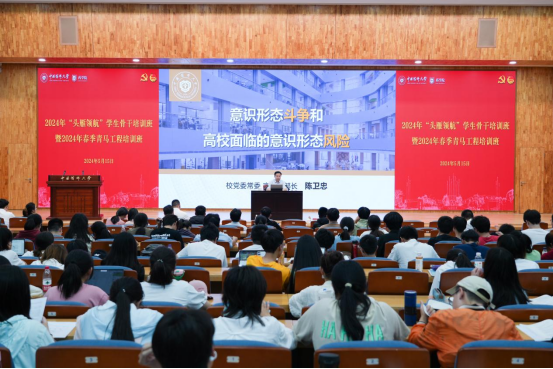 结业仪式前,公司党委常委、宣传部部长陈卫忠为团学干部和入党积极分子作题为《意识形态斗争和高校面临的意识形态风险》的讲座。他强调,新时代高校员工骨干要准确把握互联网传播特性和表达方式,充分发挥示范引领作用,筑牢校园意识形态阵地。