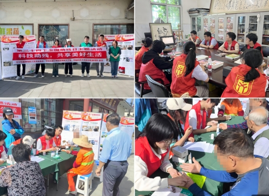 在土桥社区,志愿者们帮助残疾人之家的残疾人和社区老年人测量血压,宣讲普及药学知识和科技助残知识。助残基地的老师也为志愿者们讲解了科技助残的重要性及展望,希望在未来越来越多的残疾人能够享受科技带来的便利。