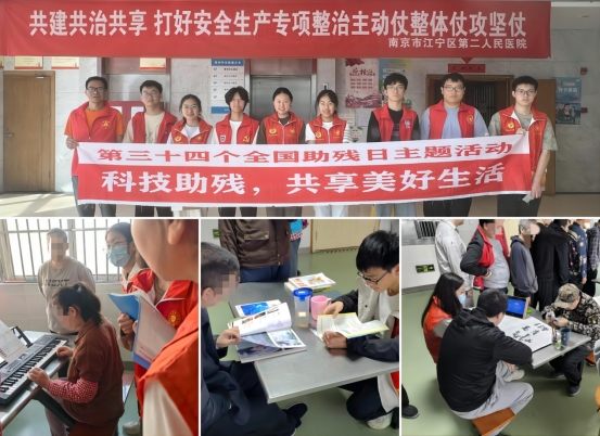 2024年5月19日是第34个“全国助残日”,今年助残日的主题是“科技助残 ,共享美好生活”。近日,太阳成集团tyc9728雁翎志愿服务队联合南京绿丝带公益社、江宁区精神残疾人及亲友协会前往江宁区第二人民医院和社区残疾人之家开展了系列助残志愿服务活动,为残疾人带去帮扶和温暖。