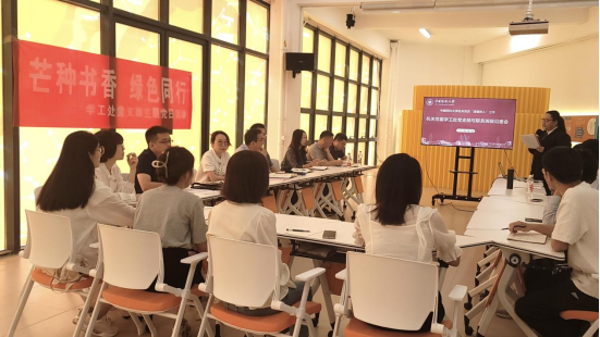 6月5日下午,学工处党支部与联系班级员工“培苗树人”工作见面会暨“书香学工”第六期读书分享会在江宁校区文华苑员工活动社区举行。活动围绕“芒种书香,绿色同行”主题展开,学工处党支部全体党员、2022级药物化学辅导员徐正保、药物化学2201502班团支部员工参加活动。