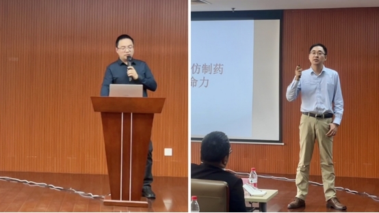 南通联亚药业产品研发总监龚健、分析研发总监郭晓烽分别为同学们作题为《仿制药研发的创新之路》《分析研发的概况和方法开发》的专题讲座,让同学们深入了解产业制剂创新与分析方法。