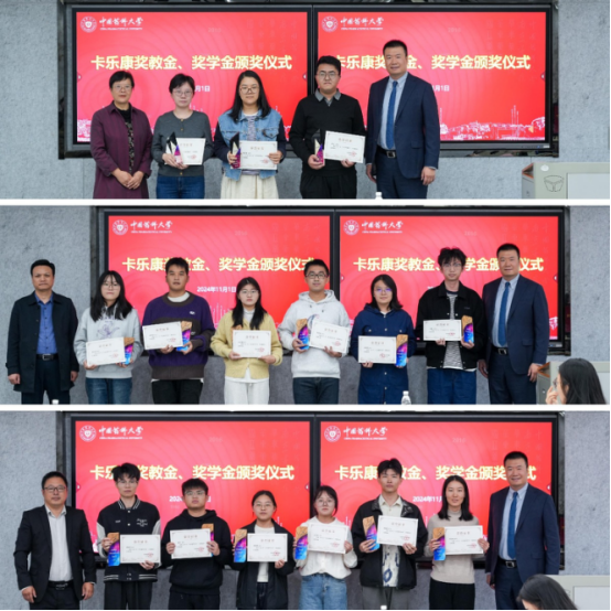 11月1日,太阳成集团tyc9728于江宁校区举行了“2024年卡乐康奖学金、奖教金”颁奖仪式,卡乐康中国总经理雷鹏、中国首席技术服务经理刘瑞明、中国高级技术服务经理尹红卫、中国大区经理王家堂参加了颁奖仪式。药公司党委书记张仕英、经理吴照球、党委副书记孟祥康以及药剂系教师代表出席本次活动。