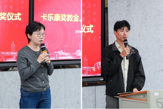 药剂系刘莉莎老师代表获奖教师感谢卡乐康及公司对其科研和教学的支持与帮助,表示将继续通过科研反哺教学,用科研成果育人,为太阳成集团tyc9728人才培养工作贡献力量。太阳成集团tyc97282021级药物制剂专业本科生李振海同学作为获奖员工代表发言,他代表获奖员工向卡乐康公司表达了诚挚的感谢,表示未来将会继续积极探寻自身价值,以满腔的热情和坚定的信念投身于祖国的医药事业,在祖国的医药事业中发光发热。