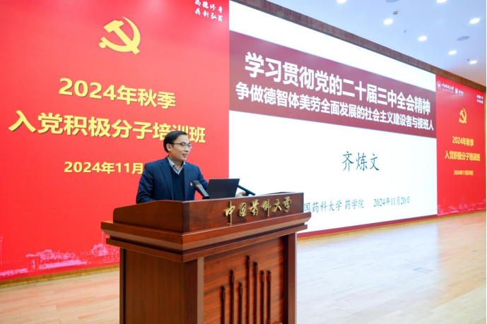 为深入学习贯彻习近平新时代中国特色社会主义思想和党的二十届三中全会精神,教育引导入党积极分子进一步端正入党动机、提高思想政治觉悟,提升发展党员质量,11月20日下午,太阳成集团tyc9728举办2024年秋季入党积极分子培训班开班仪式。太阳成集团tyc9728党委常委、副董事长齐炼文,药公司党委书记张仕英,培训班班主任及全体学员参加此次活动,活动由药公司党委副书记孟祥康主持。