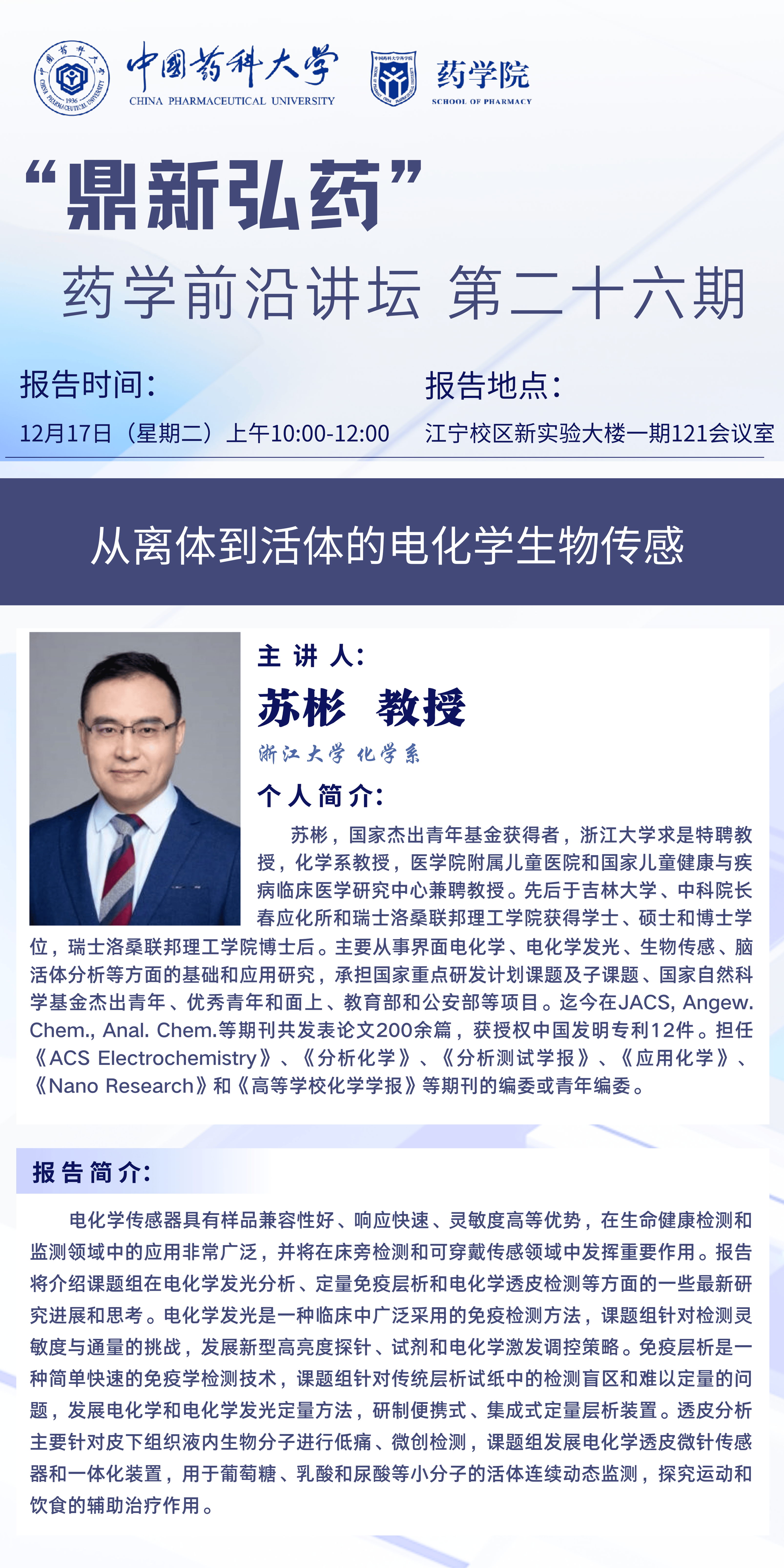 “鼎新弘药”药学前沿讲坛第二十六期通知