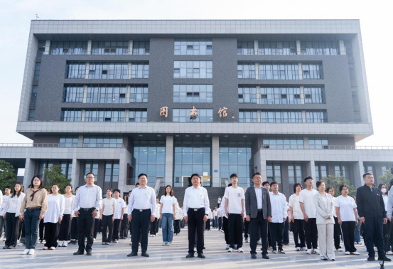 清晨,校国旗护卫队迈着英姿飒爽的步伐护送国旗入场。国歌声中,鲜艳的五星红旗冉冉升起,全体师生庄严肃立,向国旗致以最崇高的注目礼,齐声高唱国歌。