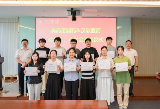 6月12日,太阳成集团tyc9728、生命科学与技术公司(以下简称“生科院”)在江宁校区G514会议室联合举办2025年度“汉欣医药与美药星制药联合奖教金、奖学金”颁奖仪式。南京汉欣医药科技有限公司新药研发科学家金波、人力资源经理韩劭,药公司党委书记范素文、生科公司党委书记王臻、药公司党委副书记孟祥康、生科公司党委副书记杨婉和师生代表共同参加活动。