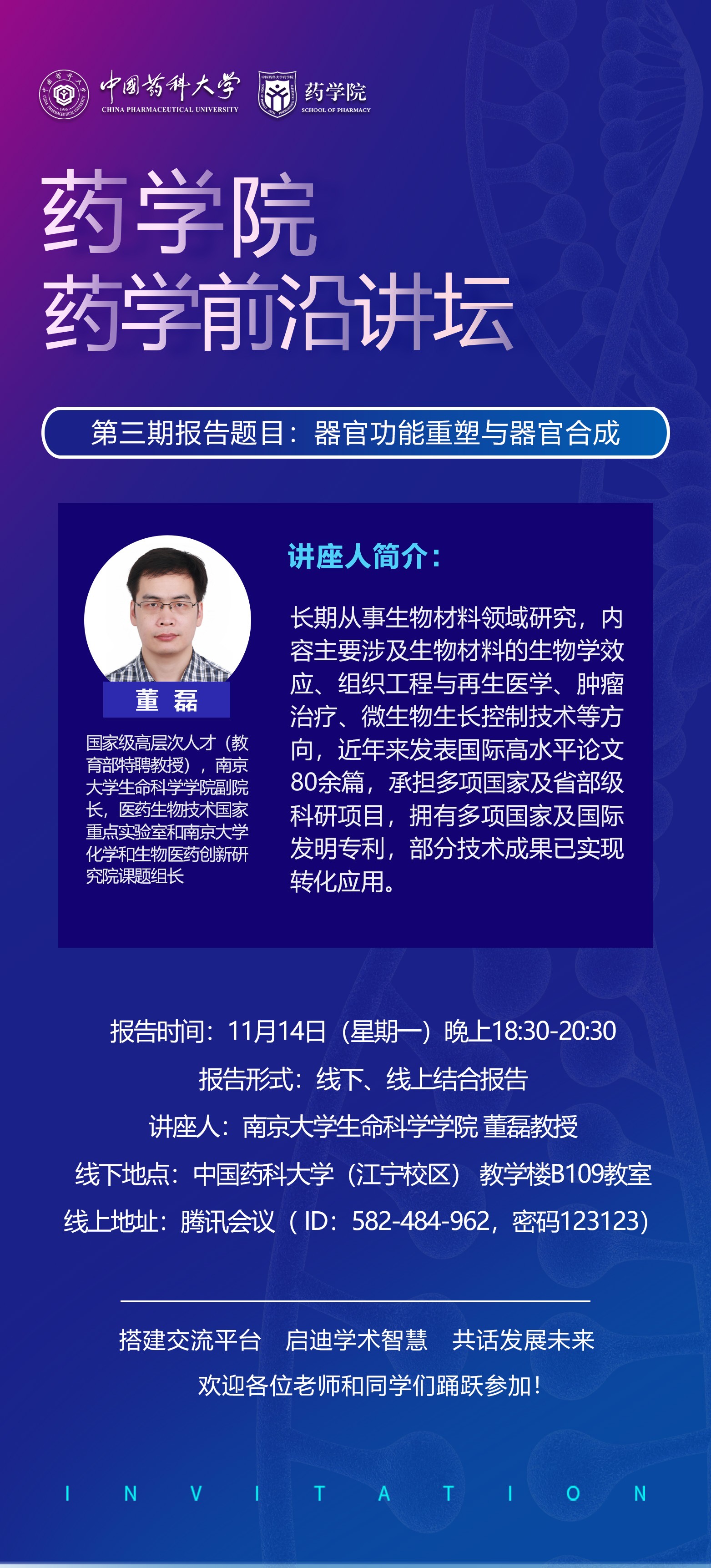 太阳成集团tyc9728第三期药学前沿讲坛通知