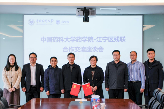 4月7日下午 ,南京市江宁区残联党组书记、理事长张敏一行来访公司就志愿服务项目合作相关工作开展交流座谈。会议在江宁校区综合研发楼G514会议室举行,药公司党委书记张仕英、党委副书记孟祥康、团委书记张驰、团委副书记李懿恒、员工发展中心主任盛洁参加座谈会。