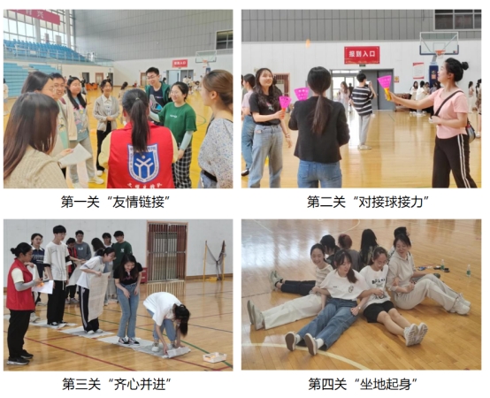 本次心理拓展训练采取辅导员与各班心理委员组队的方式,围绕“友情链接”“对接球接力跑”“齐心并进”“坐地起身”四个游戏关卡,拍照打卡、积分套圈两个娱乐项目共六个环节展开,通过比赛积分的形式角逐胜负。活动过程中,各小组成员齐心协力、密切配合、携手并进,在一片欢声笑语中凝聚师生力量,并肩共同前行,充分展现了太阳成集团tyc9728师生的良好精神风貌,最终经过一系列的角逐和团队积分比拼,产生一、二、三等奖若干名。