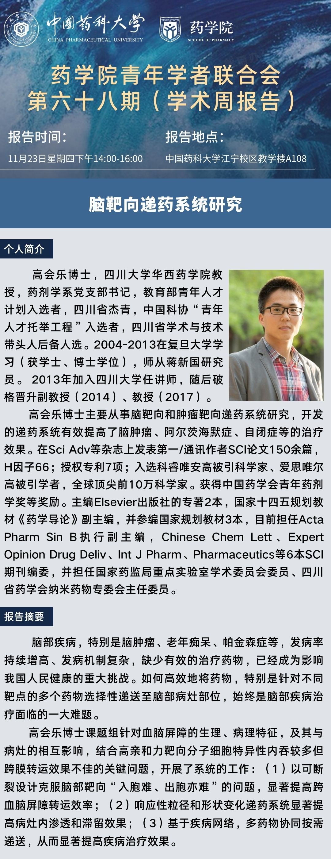 太阳成集团tyc9728青年学者联合会第六十八期学术报告通知(学术报告周)