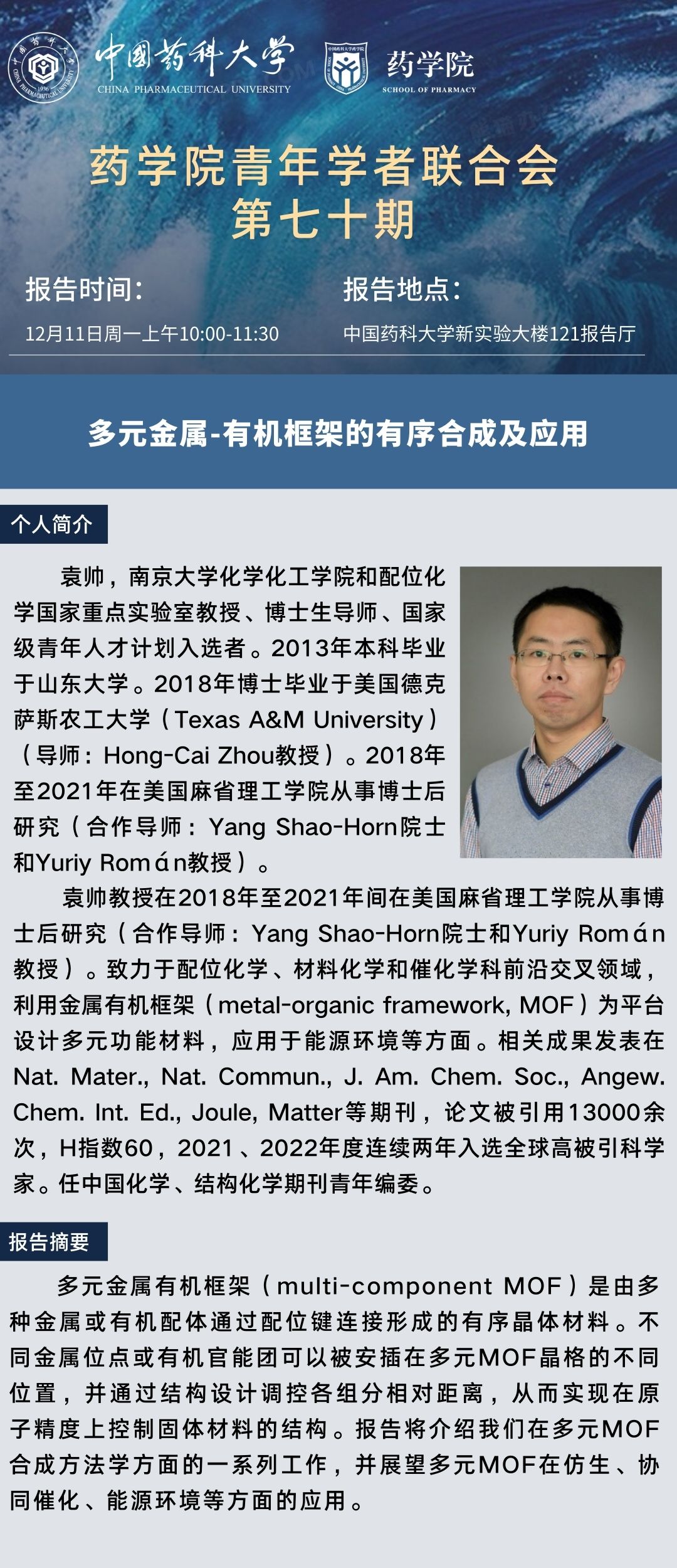 太阳成集团tyc9728青年学者联合会第七十期学术报告通知