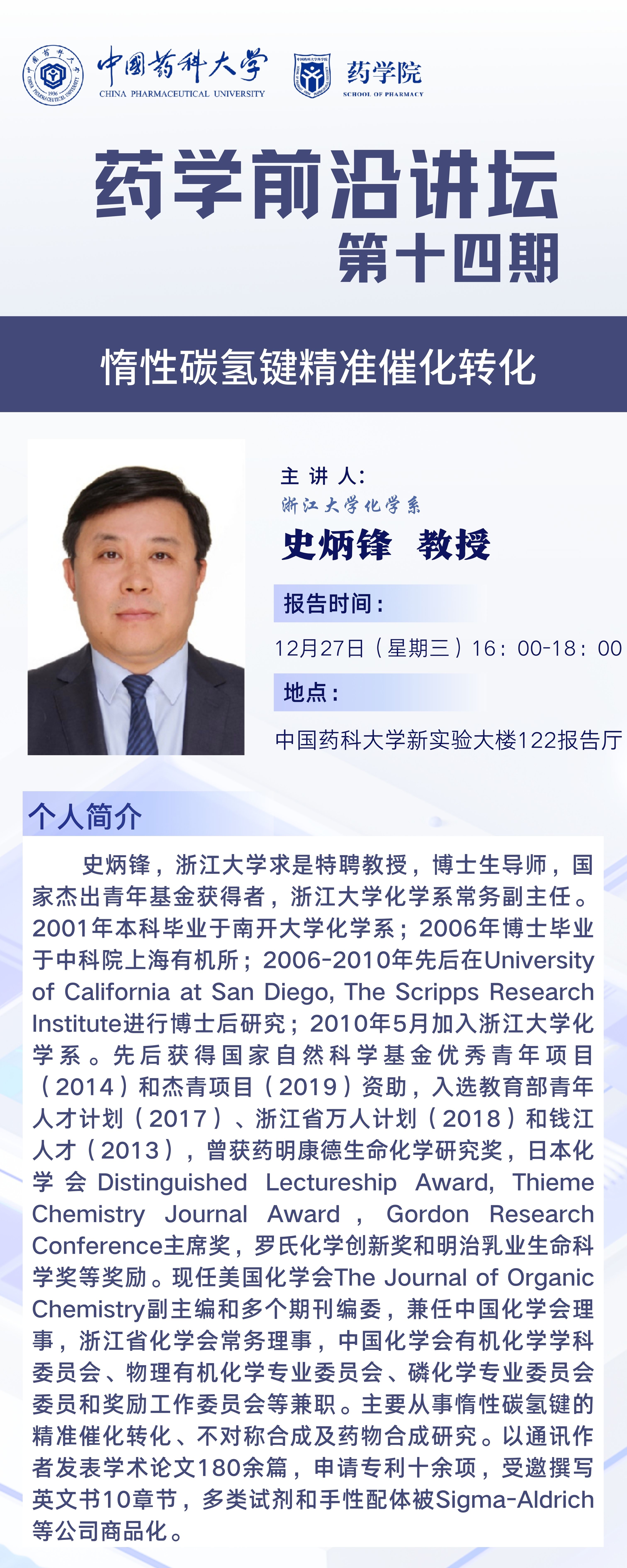 太阳成集团tyc9728第十四期药学前沿讲坛通知